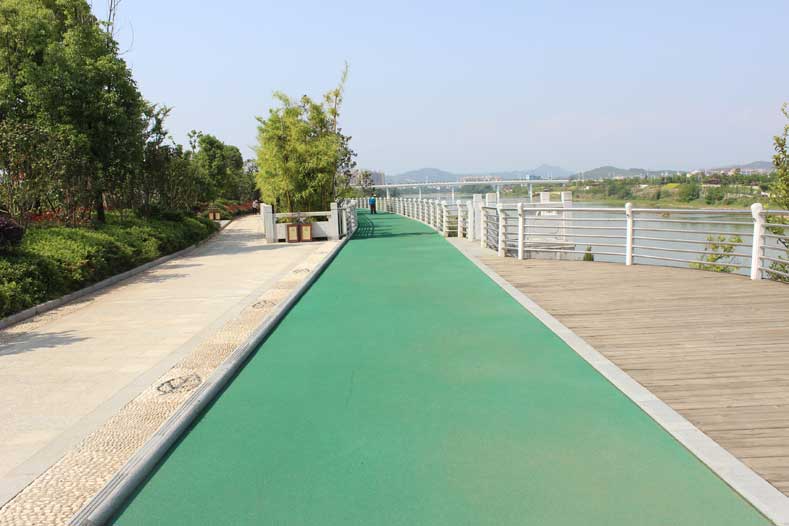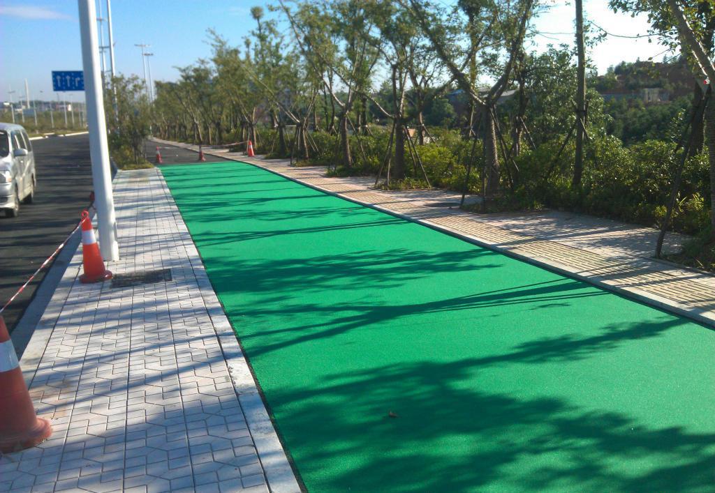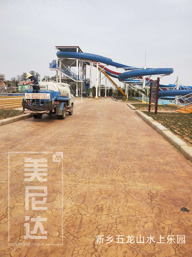 彩色混凝土是一種防水、防滑、防腐的綠色環保地面裝飾材料,是在未干的水泥地面上加上一層彩色強化料抹平收光達到上色的效果,然后噴灑透明保護劑達到路面顏色鮮亮有光澤。